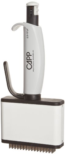 The CappAero is generally applicable for all transfers of liquids from reservoir and 384 deep-well plates into 384 well test plates and it offers very obvious advantages in PCR, micro array, and MALDI spectrometry techniques. Capp 384 multichannel pipettes feature lightweight construction and produce the most consistent and reliable liquid transfer results in one ergonomic solution. CappAero 384 Multi-channel Pipettes are designed for pipetting from 384-well plates. Most applications involving 384-well plates are performed using automated systems. Capp multi-channel pipettes provide the world’s only alternative for the quick and high precision pipetting of 64- wells at once without the use of expensive, automated equipment. 0.5-10 microliter pipette.